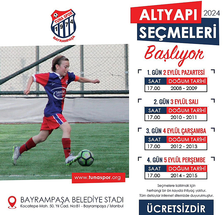 kategorilerinde 2024-2025 sezonu öncesi seçmeler organize ediyor. Geleceğin