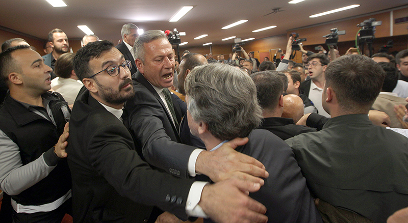 özel güvenlik ekipleri yeniden salona girdi. CHP İstanbul İl Başkanı Özgür Çelik,