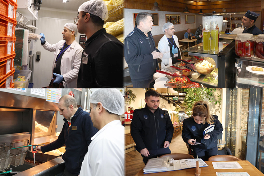Yılbaşı alışverişleri ve dışarıda yemek tüketiminin artması nedeniyle yapılan denetimlerde, işletmelerin resmi evrakları, mutfak bölümlerinin hijyen durumu, ilaçlama raporları ve yangın tüplerinin uygunluğu kontrol edildi.