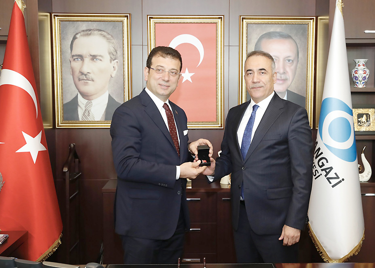 defterini imzalayan İmamoğlu’na, İBBSK Başkanı Fatih Keleş tarafından plaket
