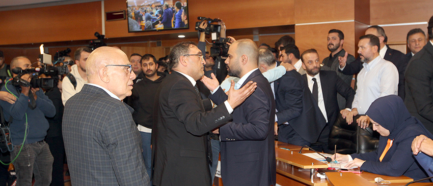Bayrampaşa Belediye Meclisi salonu tarihinin en kabalık gününü yaşarken, salon doldu, taştı.