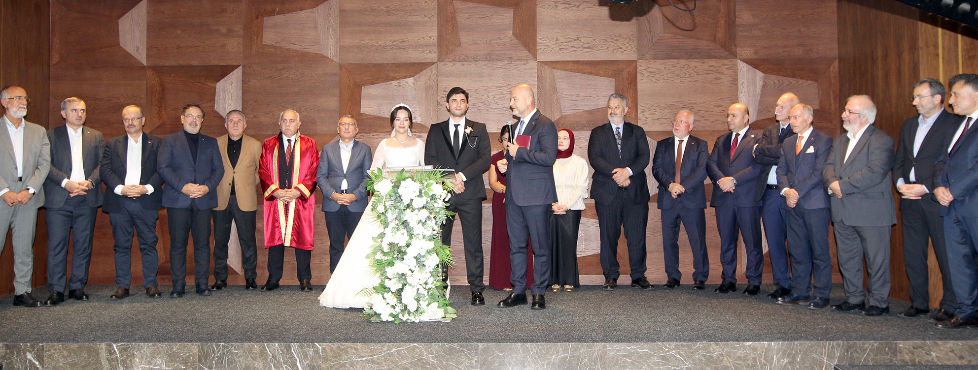 Bayrampaşa’daki Livia Convention Center’de gerçekleşen düğün töreni uzun aradan sonra Bayrampaşa protokolünün buluştuğu güzel birlikteliklere imza attı. Gerçekleşen düğün Cem Sultan Camii İmam Hatibi Sabri Hoca’nın Kur’an-ı Kerim tilaveti ve duası ile başladı. Ardından çiftin nikahını Fatih Belediye Başkanı Ergün Turan kıyarken, çiftin nikah şahitliklerini ise AK Parti TBMM Grup Başkanı Abdullah Güler, Cumhurbaşkanı Başdanışmanı Sefer Turan, İçişleri Komisyon Başkanı ve İstanbul Milletvekili Süleyman Soylu, İstanbul Milletvekilleri Halis Dalkılıç, Hasan Turan, Bayram Şenocak, Anayasa Mahkemesi Üyesi Yıldız Seferinoğlu, AK Parti MKYK Üyesi Aziz Babuşçu, önceki dönem Milletvekili Hüseyin Bürge, önceki dönem Bayrampaşa Belediye Başkanı Atila Aydıner, Bayrampaşa Kaymakamı Abdullah Çiftçi, Pendik Belediye Başkanı Ahmet Cin, Trakya Üniversitesi Rektörü Prof. Dr. Mustafa Hatipler, İstanbul Ticaret Odası Meclis Başkanı Erhan Erken, ASRİAD Onursal Başkanı Adnan Danışman, AK Parti Bayrampaşa İlçe Başkanı Mehmet Acar ve Halk Bank Yönetim Kurulu Başkanı Süleyman Özdil yaptı.