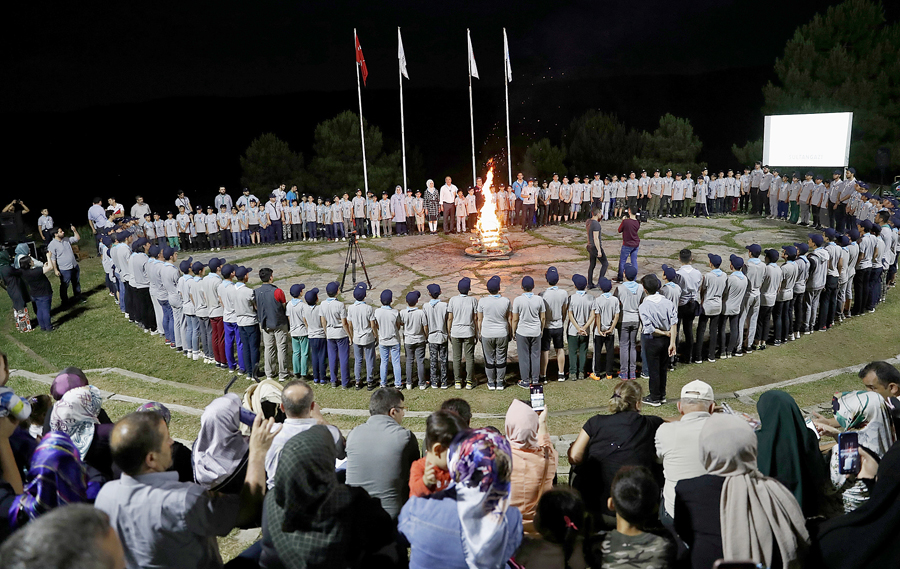 haftalık izcilik eğitimi alan 132 öğrenci, kol kola girerek “Ateş Rondu”nu