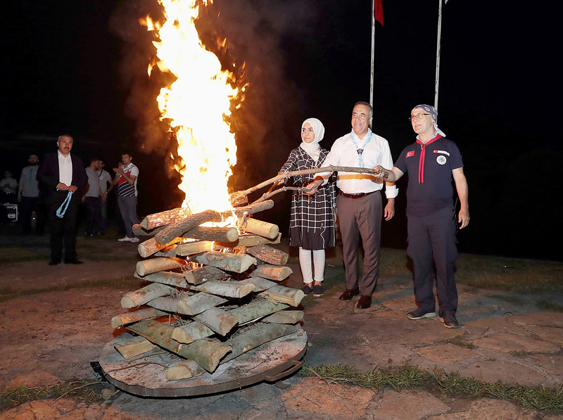 Kamp ateşinin yakılmasıyla başlayan veda programında bir