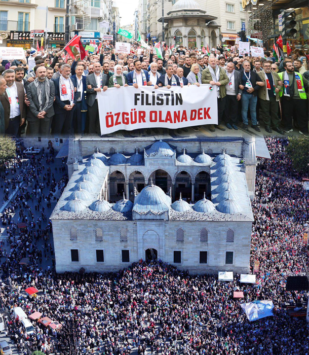 aradayız. Gazze için yürüyoruz; adaletin, vicdanın ve insanlığın izinde.