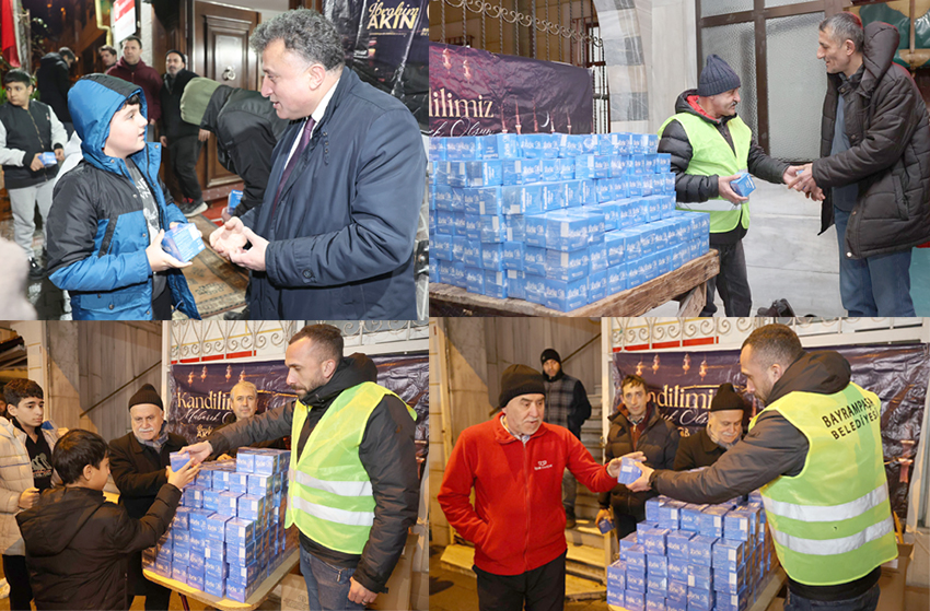 Kandili dolayısıyla ilçedeki camilerde halka kandil simidi dağıttı. Belediye