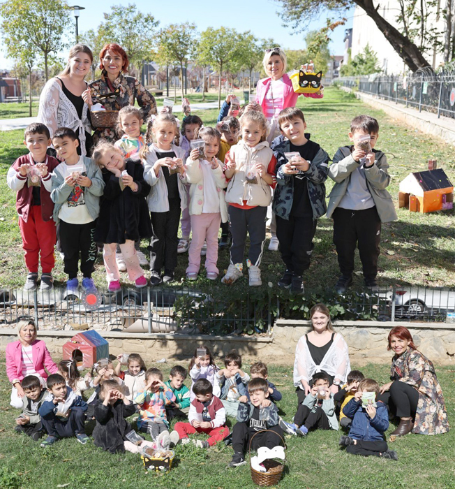 bırakırken oldukça heyecanlı oldukları gözlenen miniklerin hayvan sevgisi büyük