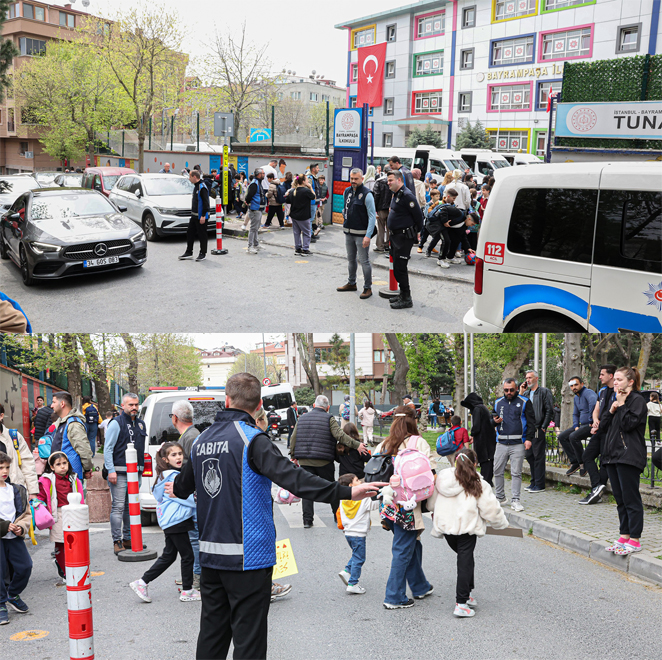 güvenle ulaşmalarını sağlıyor. Yaya geçitlerinde öğrencilerin güvenli şekilde