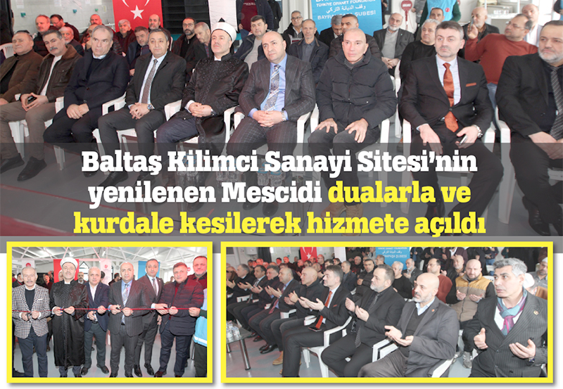 Baştan sona yenilenen Baltaş Kilimci Sanayi Sitesi Mescidi, protokol üyeleri ve sanayi esnafının yoğun katılımıyla düzenlenen törenle ibadete açıldı.