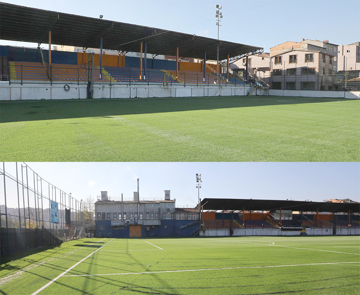 Sahanın halısı tamamen değiştirilerek profesyonel futbolcuların oynayabileceği 8 bin 256 metrekarelik çim serimi yapıldı.