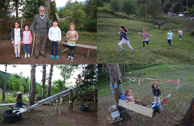 kendi imkanlarıyla ahşaptan yaptığı tahterevalli ve salıncak yerleştirdi.