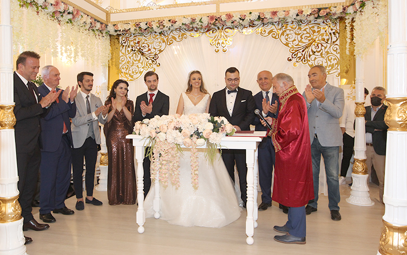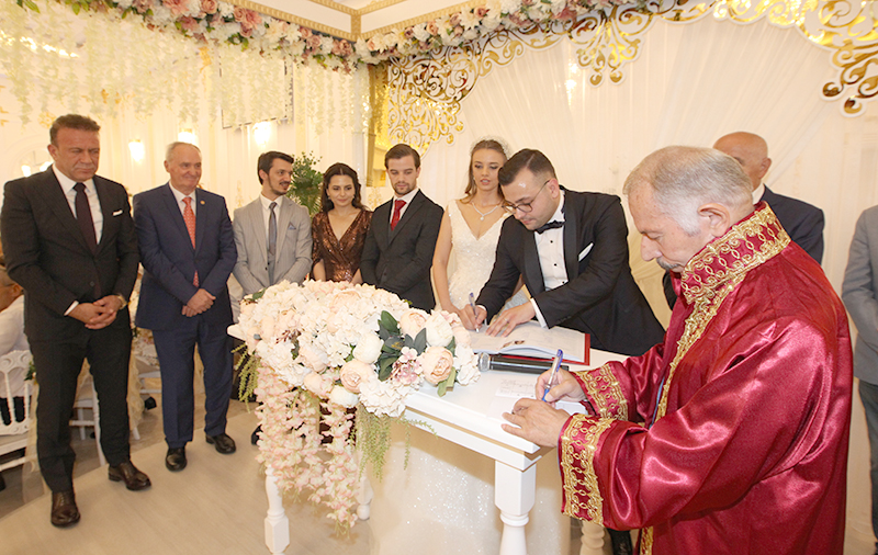 Genç çiftin şahitliğini kalabalık bir davetli topluluğu