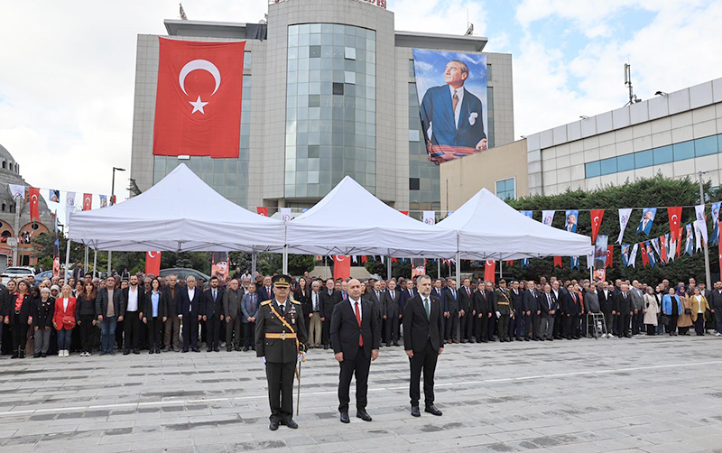 nedeniyle Bayrampaşa Belediye önündeki Merkez Parkı’nda Atatürk anıtına çelenk