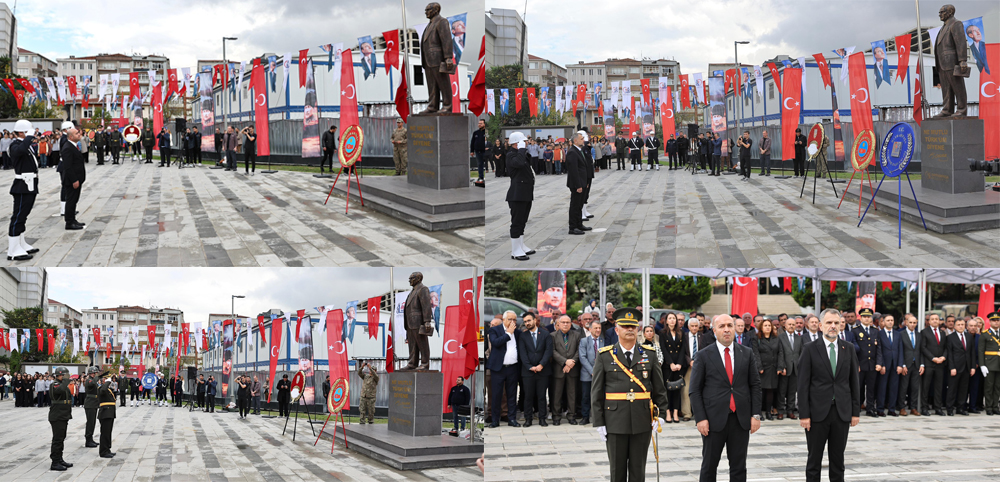olarak Atatürk Parkı’ndaki Atatürk Anıtı’na çelenkler konuldu, ardından saygı