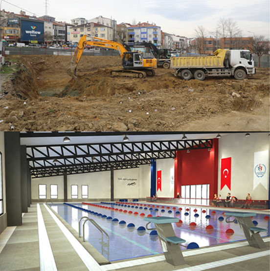 gerçekleştirilen çalışmalarda bin 250 metrekarelik yarı olimpik yüzme havuzu
