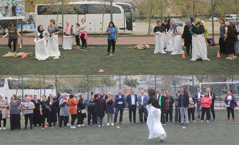 mini golf gibi sporların yanında halat ve çuval yarışı yaparak doyasıya