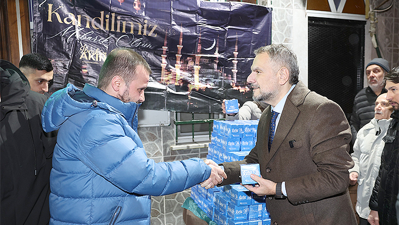 Kandili dolayısıyla ilçedeki camilerde halka kandil simidi dağıttı. Belediye
