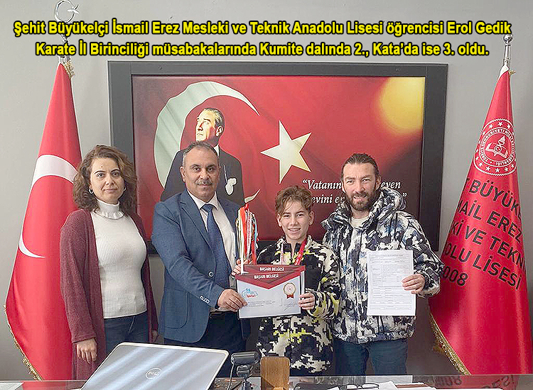 öğrencisi Erol Gedik ise Okullar arası Karate İl Birinciliği müsabakalarında Kumite