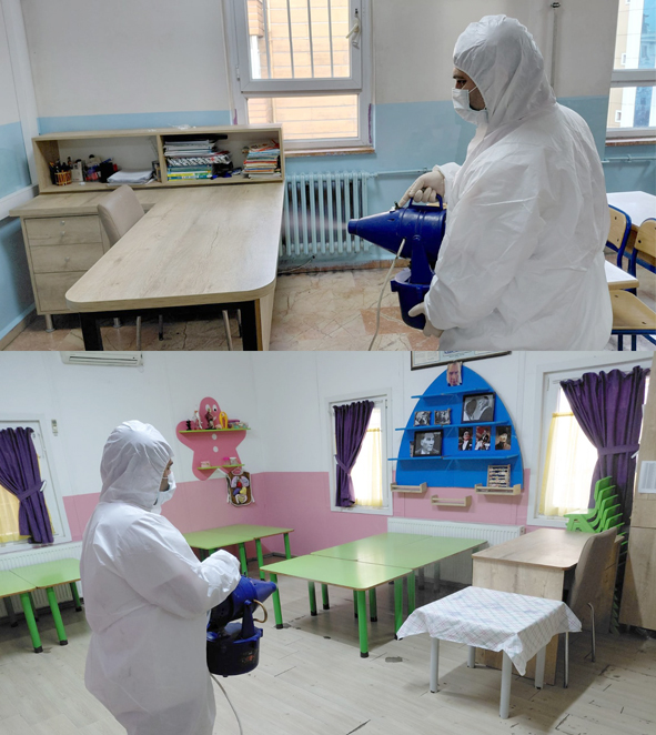 çalışmalarında el ULV cihazları kullanılıyor. Bu cihazlar sayesinde dezenfektan