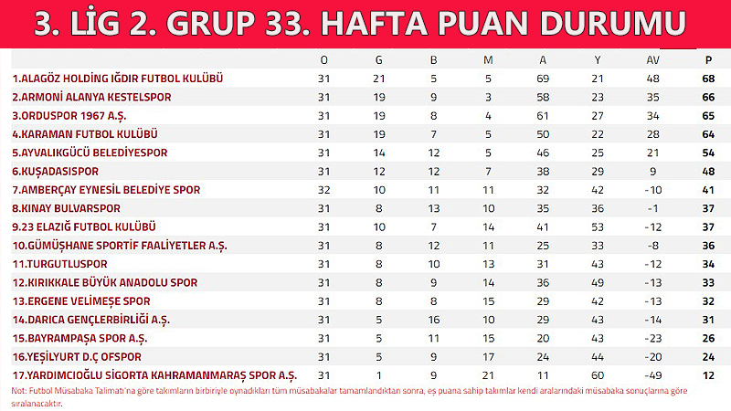 TFF 3. Lig 2. Grup’ta Ofspor'un ardından küme düşen diğer