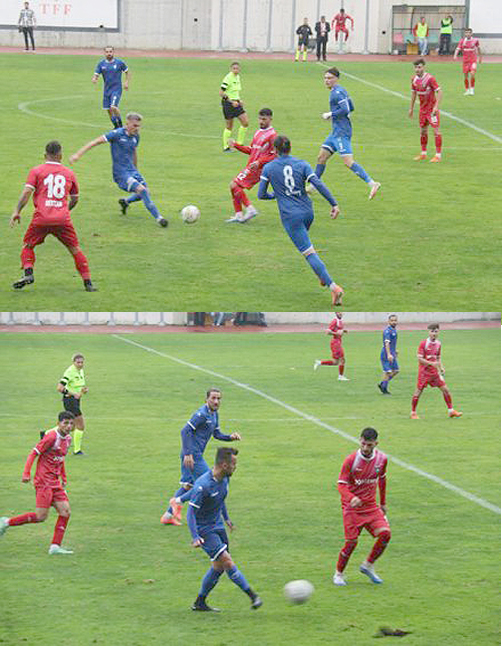 topa hareketlenen kaptan İbrahim Fatih Dilek kaleci İlksen Kuttekin’in müdahalesi