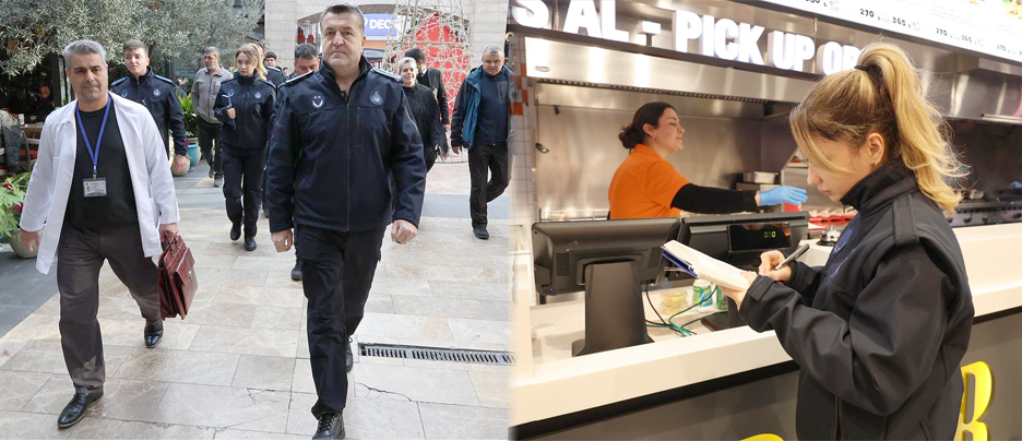 Yılbaşı alışverişleri ve dışarıda yemek tüketiminin artması nedeniyle yapılan denetimlerde, işletmelerin resmi evrakları, mutfak bölümlerinin hijyen durumu, ilaçlama raporları ve yangın tüplerinin uygunluğu kontrol edildi.