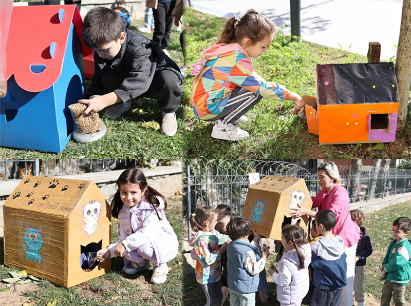 bırakırken oldukça heyecanlı oldukları gözlenen miniklerin hayvan sevgisi büyük
